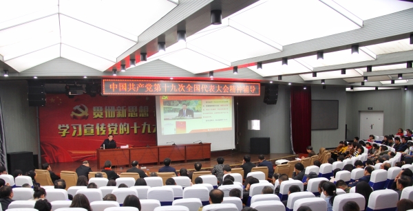 下午2点30分,张力书记在会议中心为伟德官网党政领导干部、辅导员和学生代表作十九大精神辅导报告。党委书记王英主持了报告会。