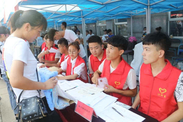 志愿者为新生办理入学手续