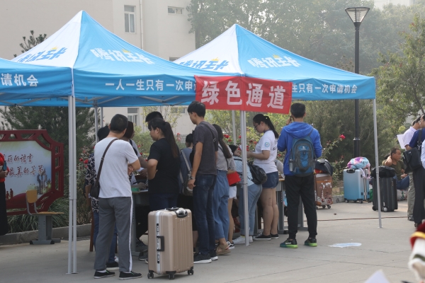 在车上向新生及其家长讲述校情、系情及唐山历史,以使他们尽早了解和熟悉学校情况。今年用于贫困新生资助的绿色通道在生源地贷款之外,新增了建档立卡的救助方式,截止到迎新结束,共有240名贫困新生通过绿色通道顺利入学。为了便于新生尽快熟悉学校路径、找到所去地点,学校还在校园各处地面贴上了指向标。各系认真办理新生入学手续,各大学生组织为新生答疑解惑,整个迎新工作井然有序、热火朝天