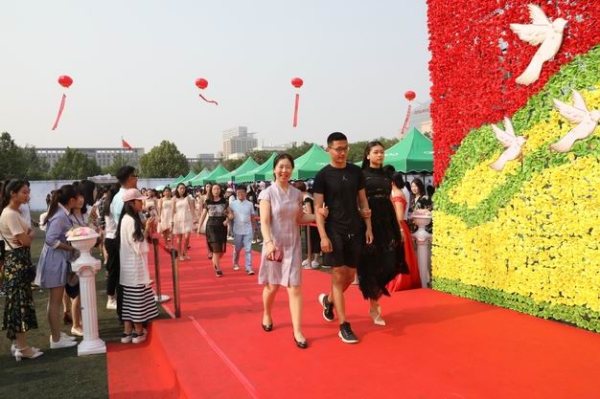 大版块,每个版块都有师院的特有印记。其中在“步依步舍”版块,党委书记王英、党委常委边宏广等领导应邀与毕业生们一起走过象征着美好未来的红毯区,王英书记代表学校送上了对毕业生的殷切希望和嘱托:“