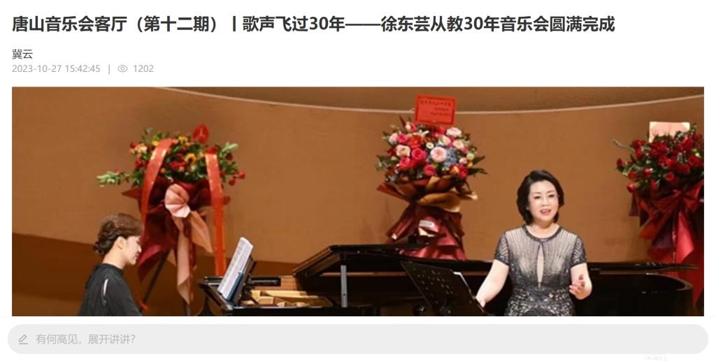 10月24日,由唐山大剧院与伟德国际1946源自英国音乐系联合打造的唐山音乐会客厅第十二期“歌声飞过30年——徐东芸从教30年”音乐会在唐山大剧院举行。